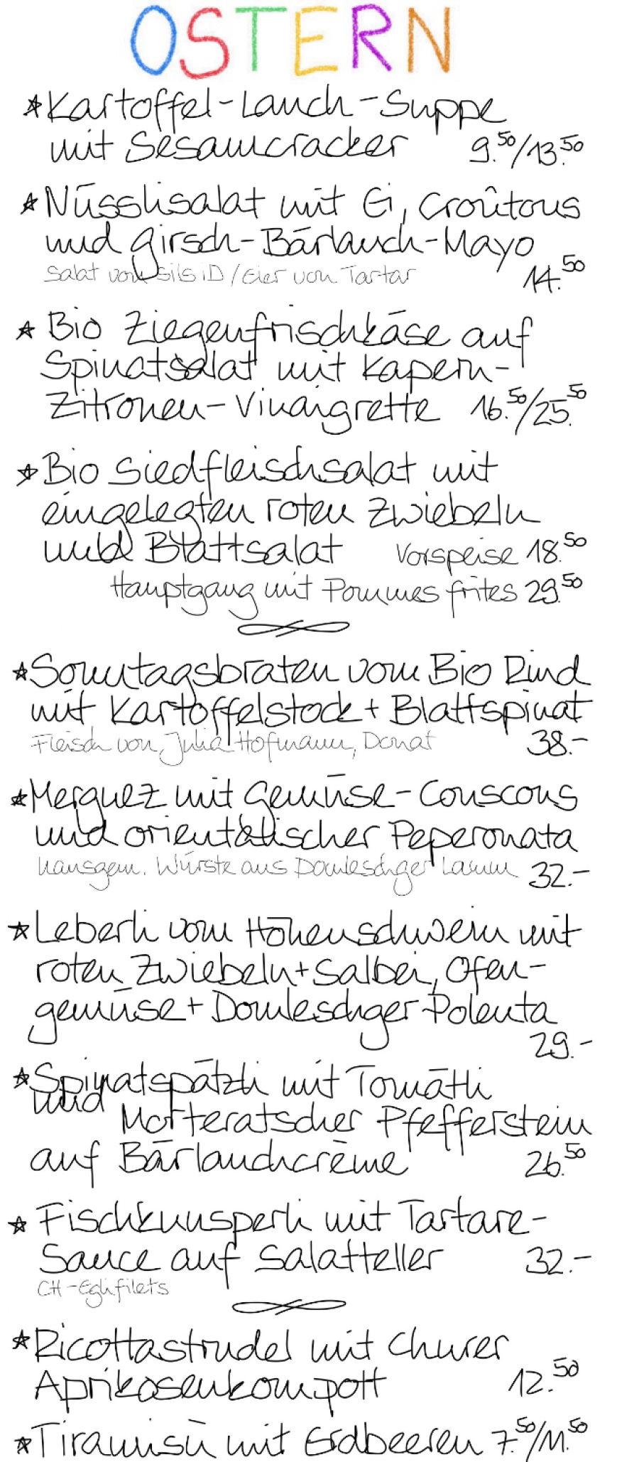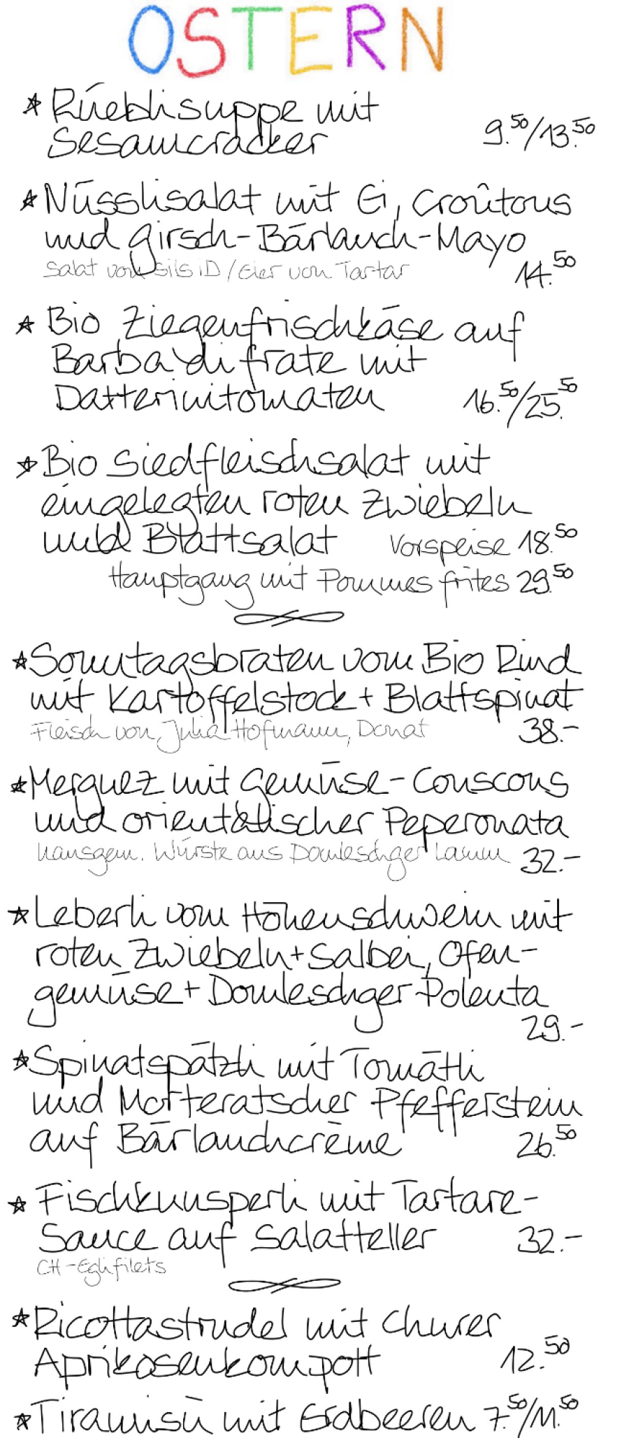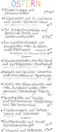 Zum festlichen Tag bieten wir ein frühlingshaftes Menü mit einer feinen Auswahl von Vorspeisen, Hauptgängen und Desserts an, alles frisch mit...