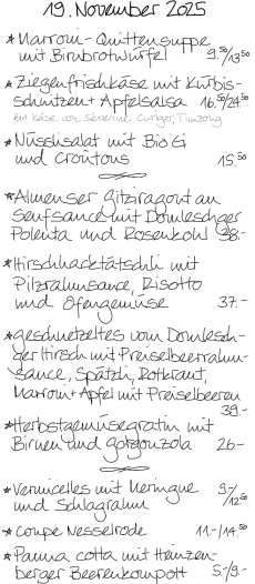 Die Wildsaison 2025 ist vorbei! Einzelne Gerichte hat es noch auf der Tageskarte. Wir servierten auch dieses Jahr ausschliesslich einheimisches...