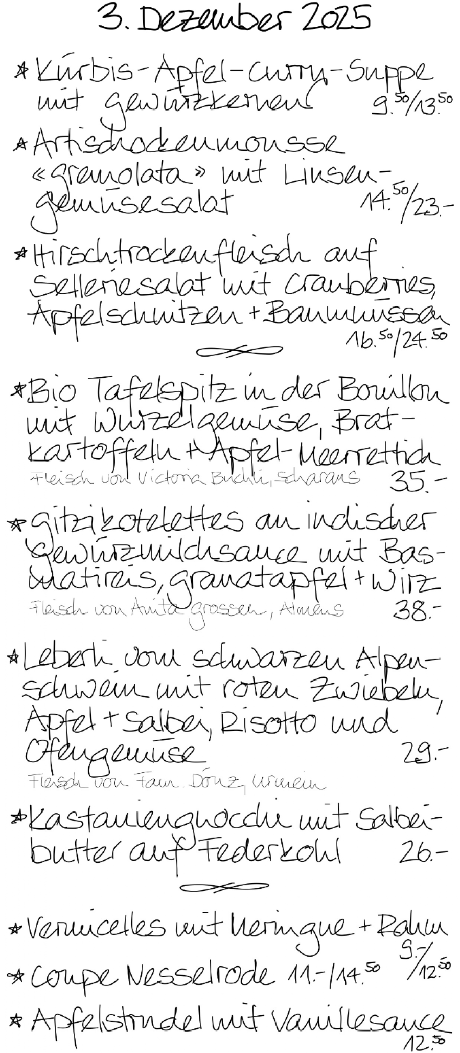 Wir kochen mit Sorgfalt und Liebe – und servieren mit Herz und Verstand. Unser wechselndes Tagesangebot besteht aus vegetarischen Gerichten und solche mit hochwertigem Fleisch, meist Bio. Einige Klassiker sind immer auf der Menükarte. Die Wein- und Käsekeller sind gut gefüllt mit Spezialitäten von nah und fern, die auf Schlemmer und Geniesserinnen warten!